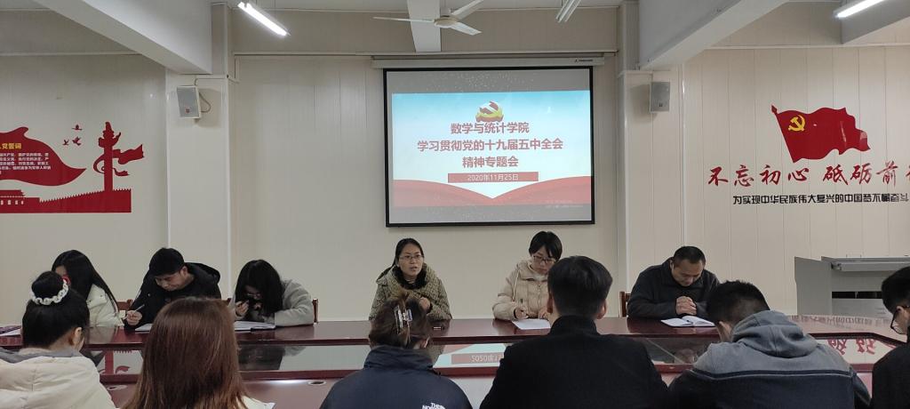 为深入学习贯彻党的十九届五中全会精神,11月25日,老太阳集团8722组织广大师生在数计楼407会议室开展了贯彻党的十九届五中全会精神集体学习,党总支副书记刘颖方和全体师生党员参加了会议。