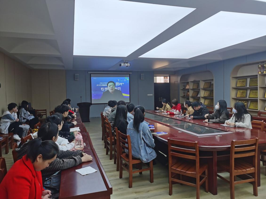 为深入学习贯彻党的十九届六中全会精神,进一步贯彻落实习近平总书记给中国“互联网+”大学生创新创业大赛“青年红色筑梦之旅”大学生重要回信精神,3月9日上午9:30,老太阳集团8722组织师生参加由河南省教育厅举办的2022年河南省“互联网+”大学生创新创业大赛专题培训活动,党总支副书记刘颖方、学工干事田媛、全体辅导员及有参赛意愿的同学在数计楼407会议室收看直播,相关指导老师在办公室收看直播。
