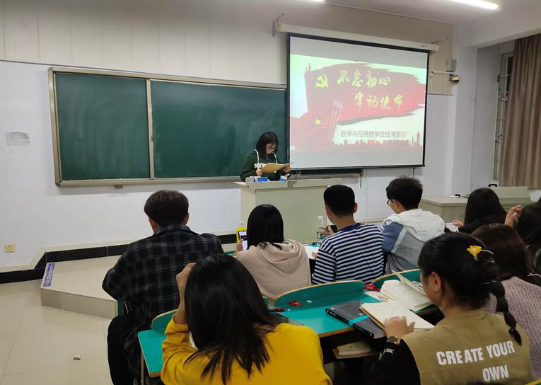 2019级数学本科4班共有55名成员,其中团员率为100%。这是一个充满温暖、有着极强凝聚力的团支部,他们热衷于把一个班集体和团支部建设成一个充满温暖的家;学习上,刻苦认真,态度严谨,成绩优秀;思想上,追求进步,不断提高,积极响应团总支的号召。他们的参赛口号是:忠诚合作、积极乐观、努力开拓、勇往直前!