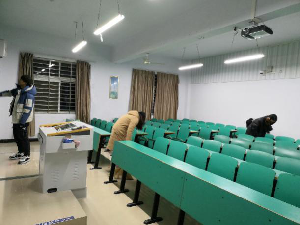 本次参加培训的的入党积极分子在负责人的带领下整齐有序地对数计楼各个教室进行打扫。大家对教室的黑板、讲台、桌椅、地板等各个角落都进行了清扫。大家都相互帮助,不怕累,不怕脏,共同把教室打扫干净后才有序离开。
