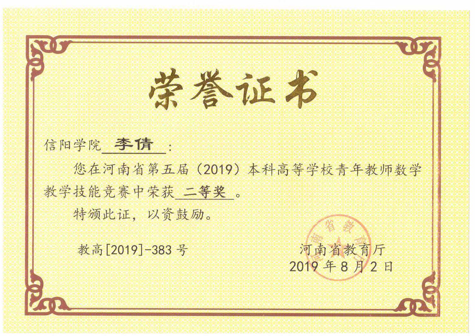 近日,第五届河南省本科高等学校青年教师数学教学技能竞赛决赛成绩揭晓,该院李倩老师获得二等奖,杜金姬老师获得三等奖。