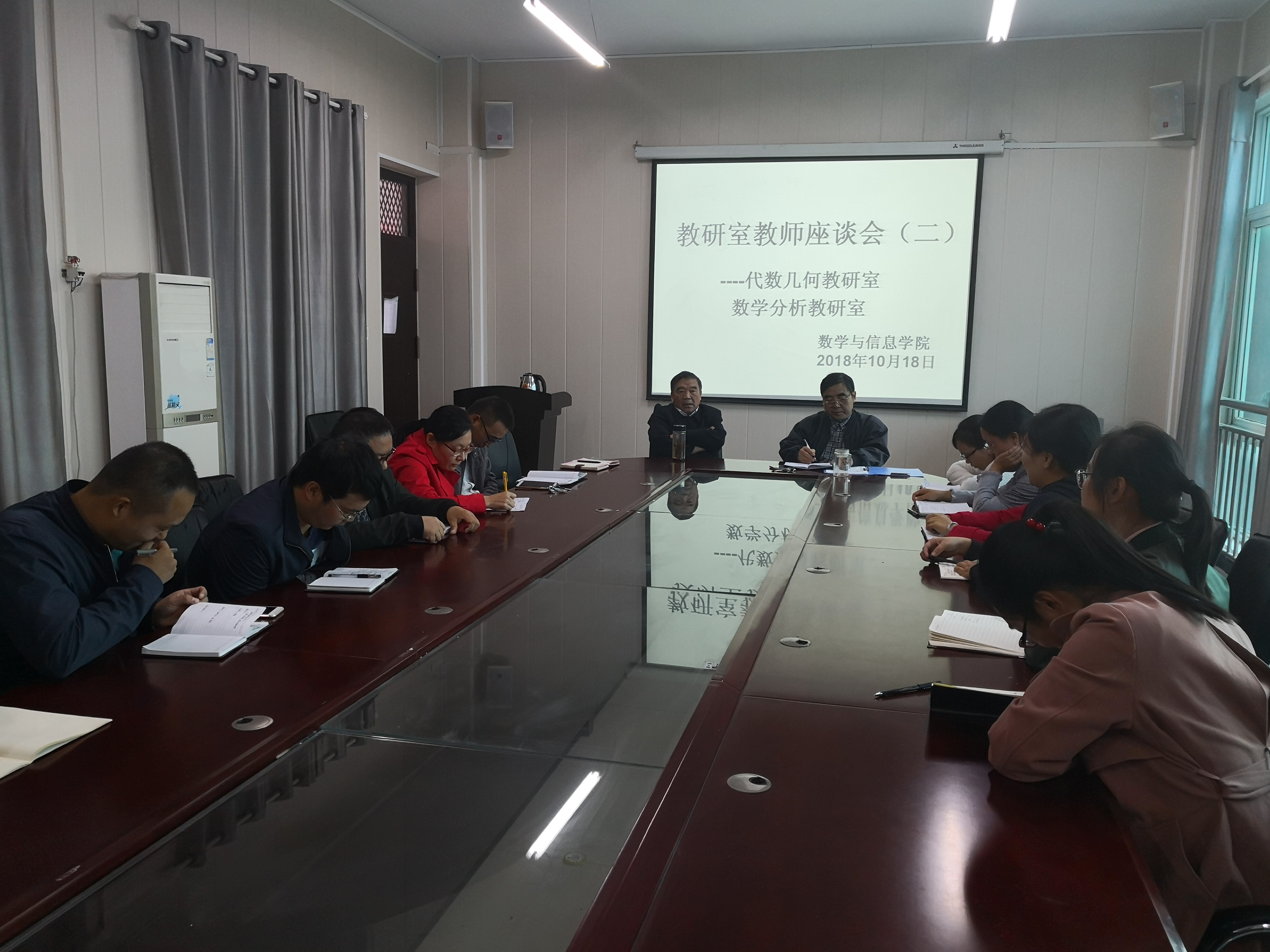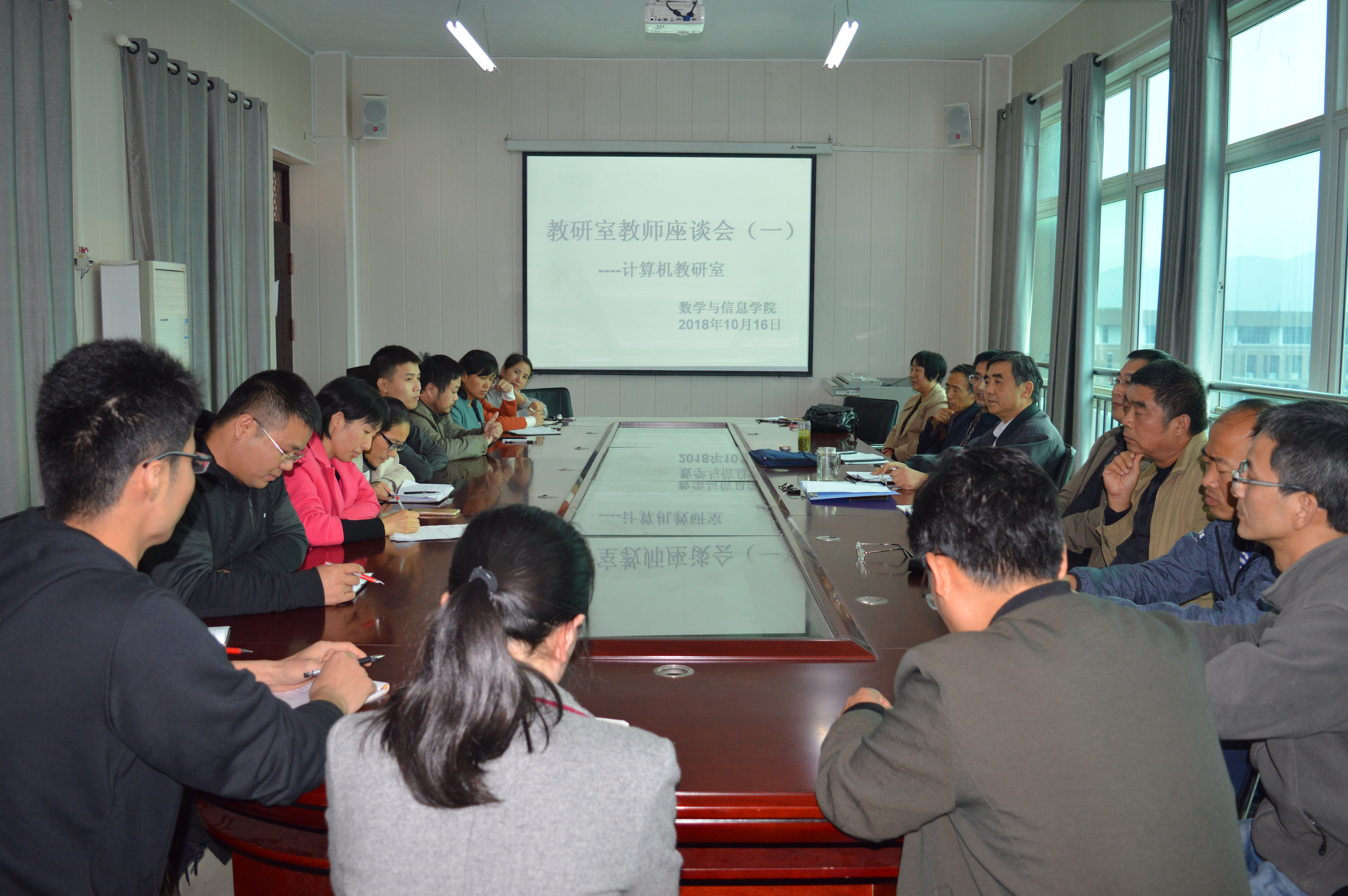 为进一步强化教研室管理,加强教师团队建设,数学与信息学院于10月16日、18日,11月27日在数计楼会议室先后召开了计算机、数学分析、代数几何、高等数学教研室建设座谈会。院长俞迎达、教学秘书毛凤翔与各教研室教授、青年教师进行了座谈。