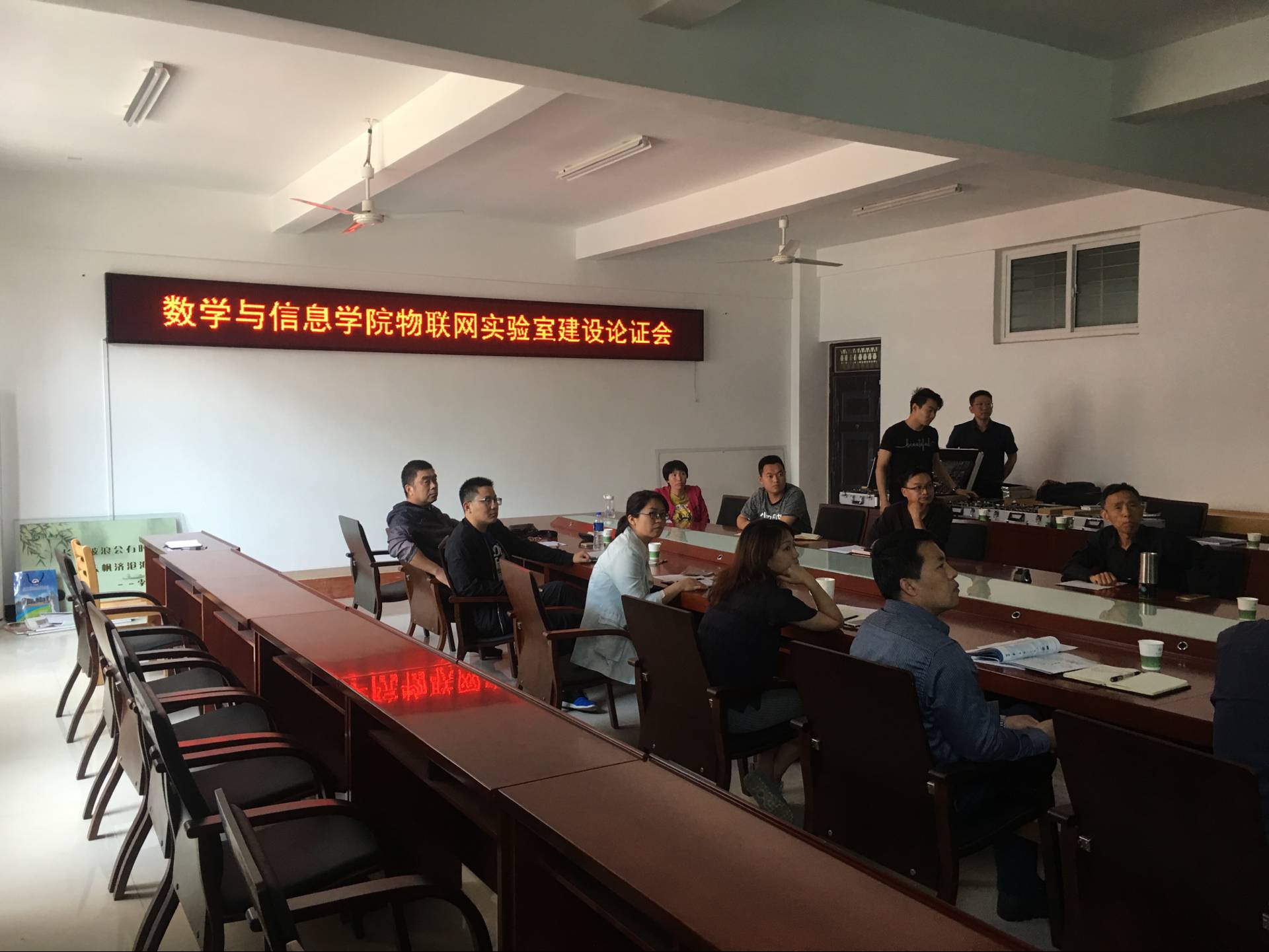 日前,学校在行政楼206会议室召开数学与信息学院物联网实验室建设论证会。校长助理高雅出席会议,教务处副处长邓荣娟,现代教育中心助理刘硕,数学与信息学院院长郝涌、论证专家信阳师范学院计算机与信息学院副院长李国梁、信阳学院数学与信息学院张连堂教授、陈玉科教授、周顺生副教授、计算机教研室相关教师、资产处和有关实验设备企业代表等参加了会议。会议由郝涌主持。