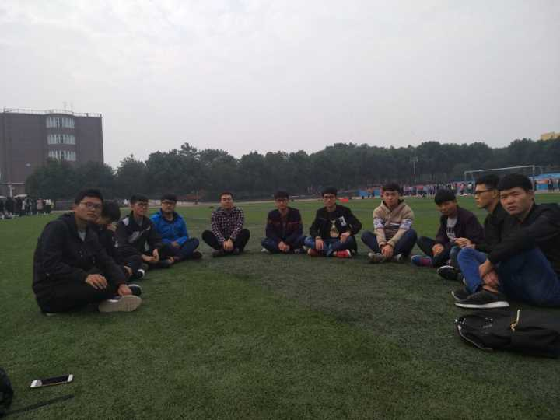 李金伟老师带领同学们来到操场,大家围坐一圈,通过这次面对面的谈话不仅拉进了导师和同学们的距离,同时也增进了同学们之间的友谊,更好的表达自己的看法。