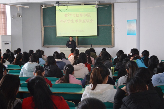 数学与信息学院领导非常重视和关心学生考研情况,通过考研动员、考研经验交流、专业老师考前指导、提供考研信息等多方面关心考研学生,及时了解考研学生的需求并解决困难,让每一位考研的同学心里感受到了学院的关怀,坚定同学们的考研信心。