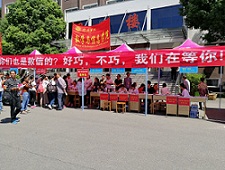 在迎新现场依次展出了学院简介、考研宣传、新生名单、报到流程、校区指南等六块介绍和引导标识。志愿者们热情的为新生提供“全方位”的服务,根据分工,在学校统一设立的多个接待口处举牌迎接新生,随后引导新生办理入学手续。为了让新生及家长缓解舟车劳顿,志愿者们还专门租赁了电动三轮车,帮新生把行李搬运到寝室里。