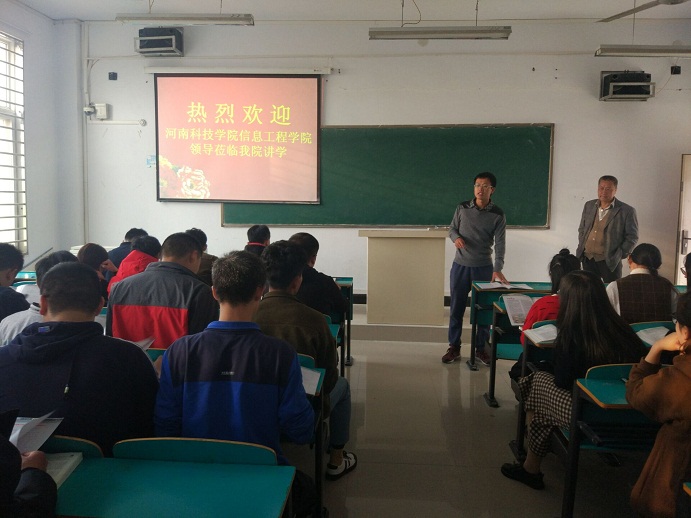 10月20日,河南科技学院信息工程学院党总支书记郎瑞宏一行3人来我院考察交流。院长郝涌、党总支书记张俊忠、教学秘书毛凤翔参加了交流。双方就计算机类专业建设、发展趋势和相关技能培养等进行了交流。随后,郎瑞宏一行还深入课堂,就河南科技学院信息工程学院计算机专业研究生招生情况进行了宣讲。