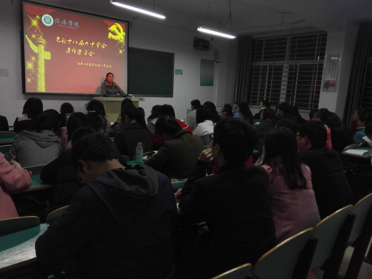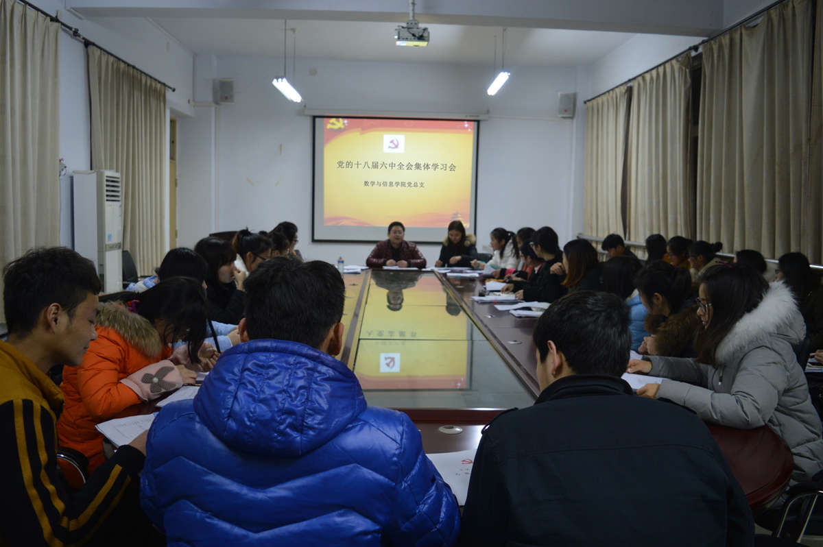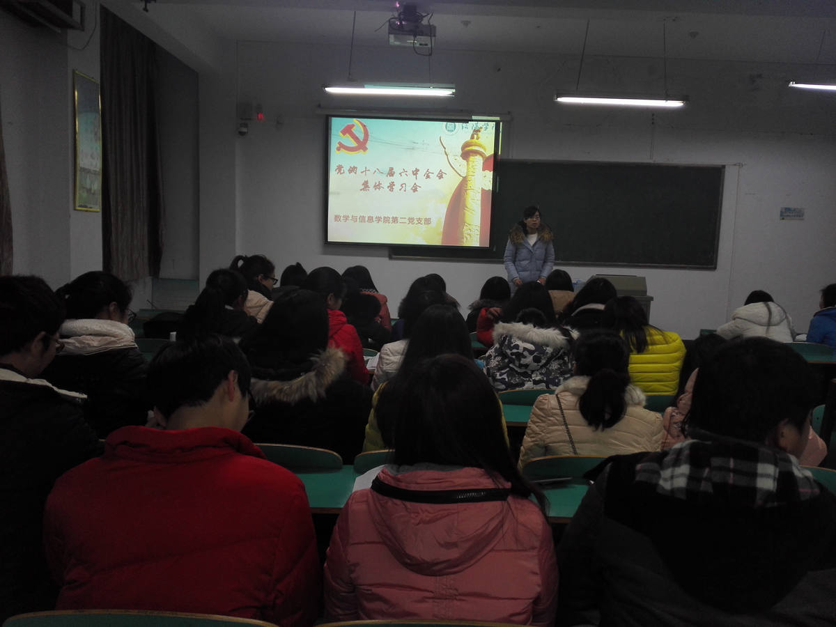 12月12日晚,数学与信息学院组织开展学习党的十八届六中全会精神,院党总支副书记秦笠,院学生第一、二党支部书记何珊珊、司杰,分别参加了2016年下半年党员发展对象、学生党支部的集体学习会。