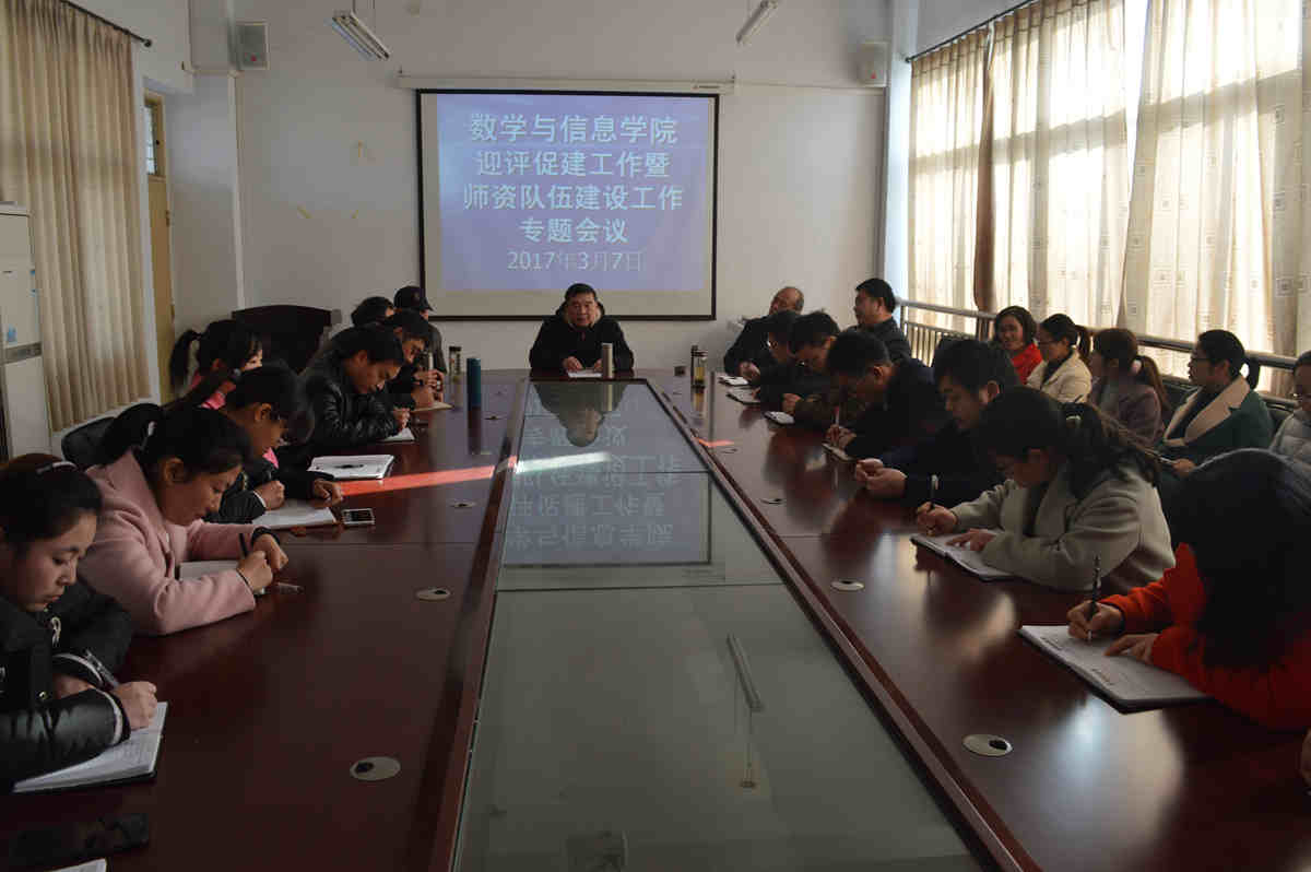 3月7日下午,数学与信息学院在数计楼510会议室召开迎评促建暨师资队伍建设专题会议,该院院长郝涌教授,全体特聘教授及教师参加了会议。
