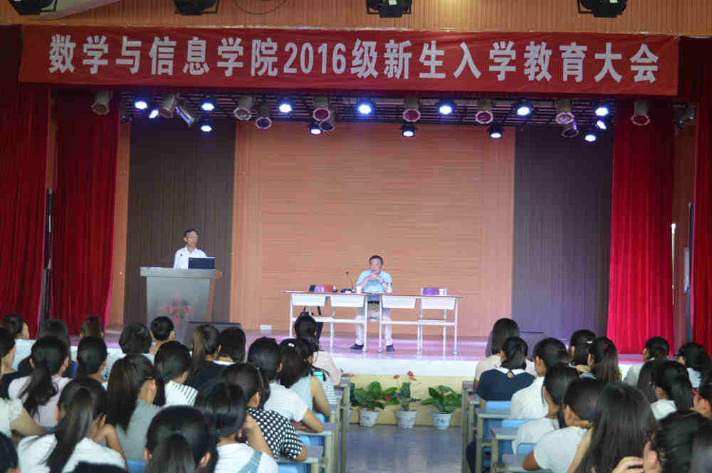 9月5日下午,数学与信息学院在大学生活动中心召开2016级新生入学教育大会,大会特邀河南大学计算机科学与技术学科专家张连堂教授、数学与信息学院院长郝涌教授分别就数学、计算机、物联网专业的基本情况、学科发展、就业前景等方面做了主题报告。秦笠主持了本次大会。