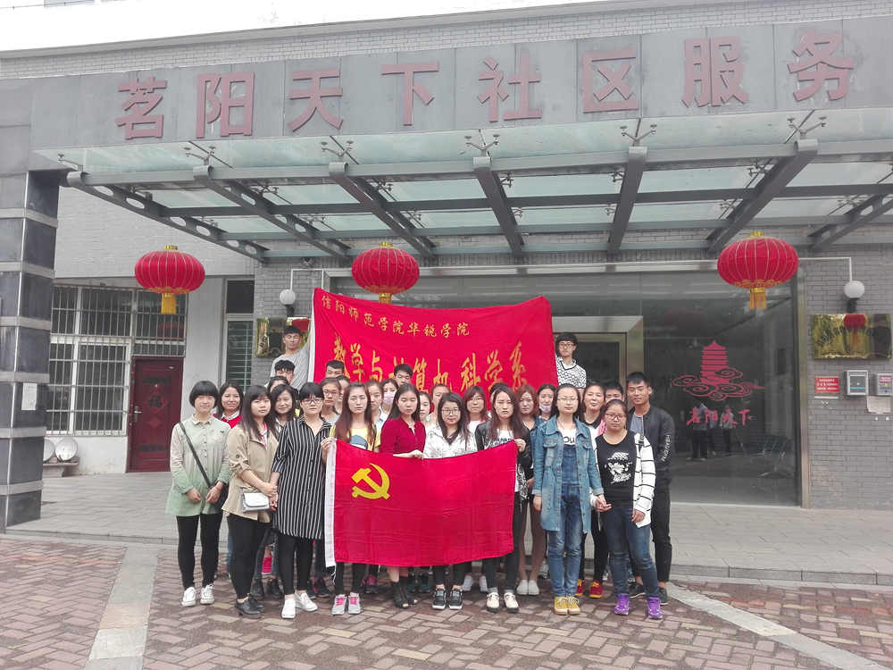 5月8日下午, 数学与信息学院本学期入党积极分子和党员发展对象56人深入信阳市茗阳天下社区开展志愿服务活动。
