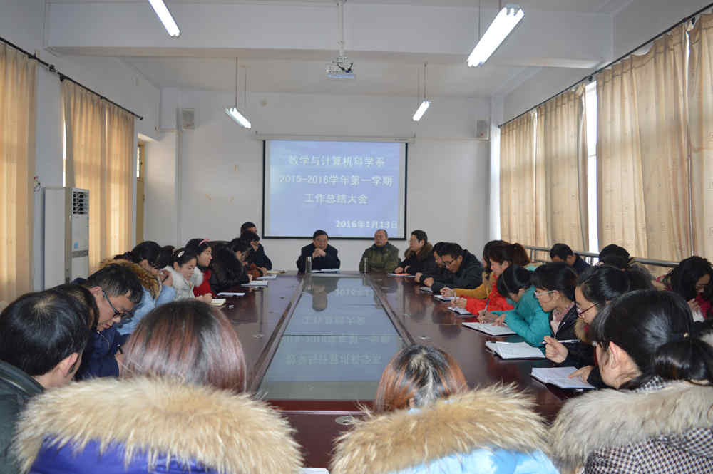 1月13日上午,数学与计算机科学系在数计楼510室召开期末总结会议。系主任郝涌教授、系专家裴惠生教授、周顺生副教授及全系老师参加了本次会议。