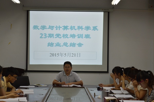 5月21日晚,数学与计算机科学系在数计楼510室召开23期党校培训班结业总结会。系党总支副书记秦笠、系学生一、二党支部书记王晶、司杰及23期党校学员参加了会议。