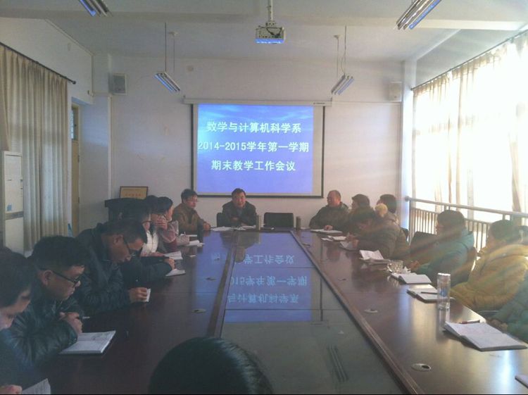 12月17日下午,数学与计算机科学系在数计楼510会议室召开期末教学工作专题会议,系主任郝涌教授、系特聘专家裴惠生教授及全体教师参加了本次会议。