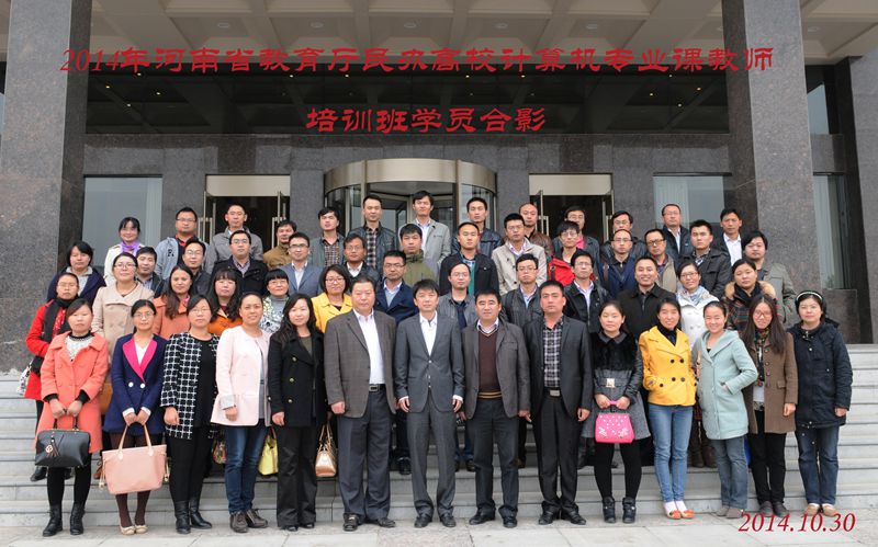 2014年10月30日,由河南省教育厅主办的全省民办高校计算机专业课教师培训班于在郑州市黄河科技学院举办。 来自全国27余所民办本科院校、独立学院的52余名计算机专业教师参加了培训班的学习。我院数学与计算机科学系贾彦茹、杨军两位教师参加了本次培训班。