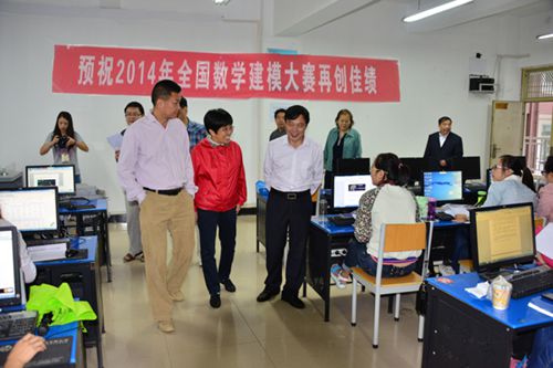 9月12日上午,董事长高峰、院长施昌海、党委书记张莉、常务副院长高云、副院长毛海涛在数学与计算机科学系、教学部、招生就业部、宣传部等单位负责同志陪同下,实地观摩了我院参与2014年全国大学生数学建模竞赛活动情况,看望慰问了参赛师生。