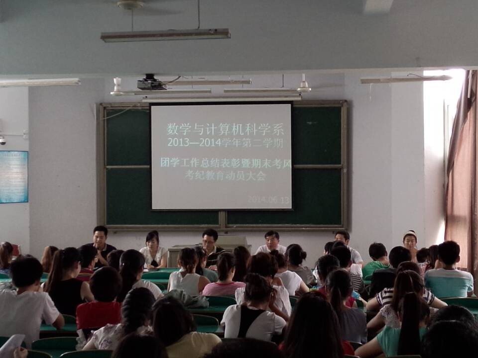 6月13日中午14点,数学与计算机科学系召开2013—2014学年第二学期团学工作总结表彰暨考风考纪教育动员大会。系主任郝涌,相关教师及全体学生干部参加了本次会议。