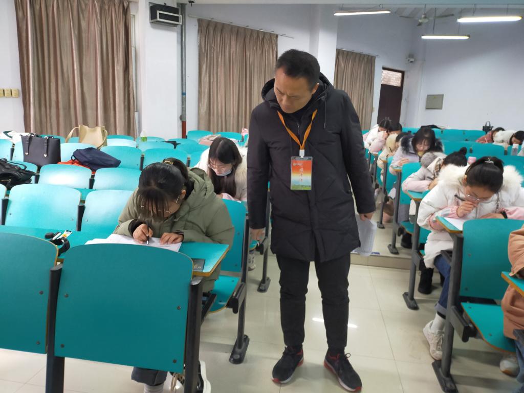 本学期期末考试工作于1月2日起全面展开。院长俞迎达、党总支副书记李平,教学秘书张聪等深入各考场检查期末考试工作。