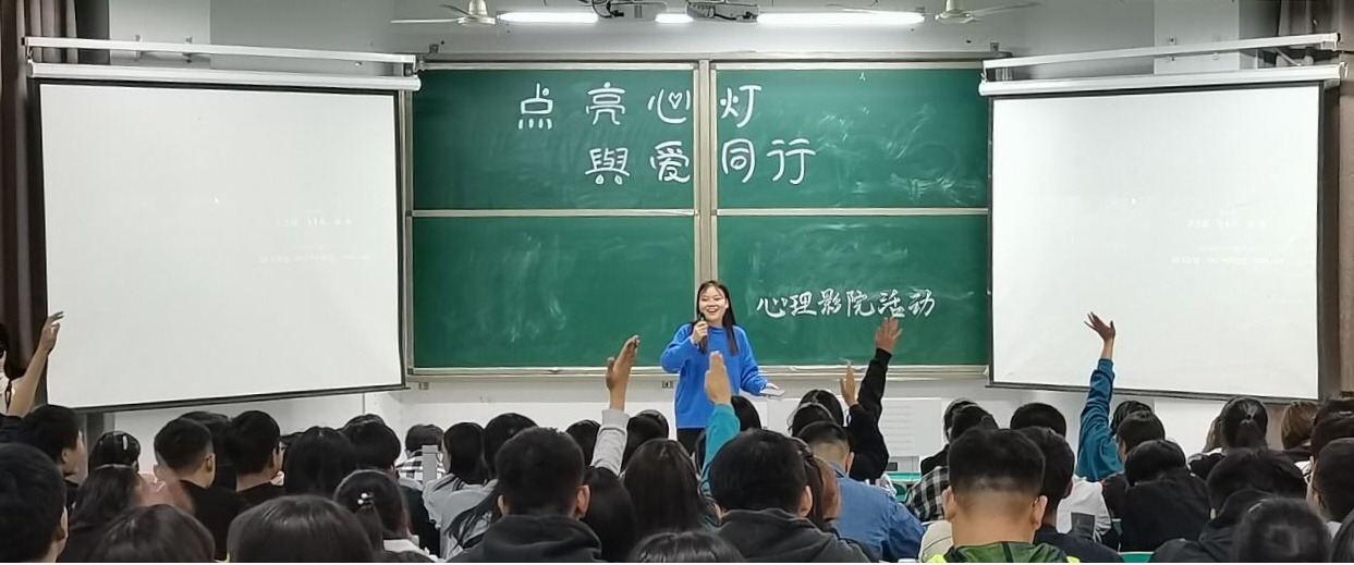 10月25号晚,在数计楼107教室我院组织新生代表100余名学生,观看了心理影片《海洋天堂》。影片结束后的有奖问答环节,同学们积极参与,积极讨论。本次活动旨在引导同学们学会关爱他人,学会帮助身边的特殊群体。