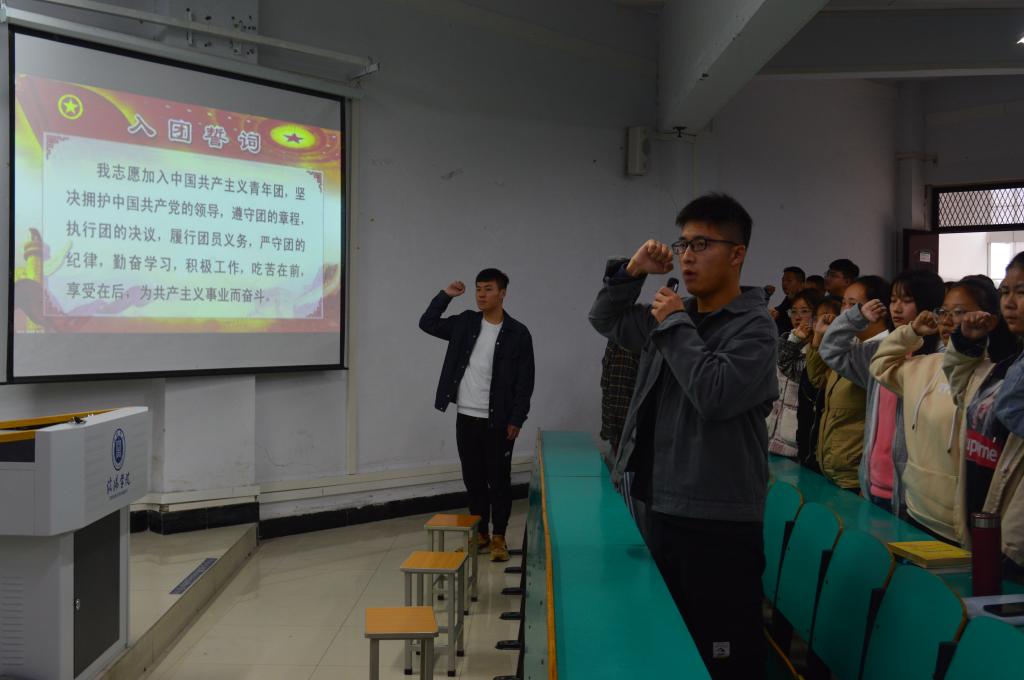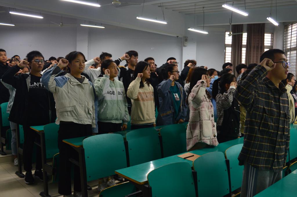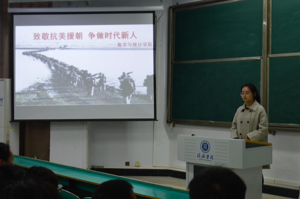 活动开始,全体师生起立齐唱国歌。田媛老师向同学们做主题报告,讲述抗美援朝精神的时代价值、赢得胜利的制度优势、政治优势和精神优势等,意在引导同学们不断增强斗争精神、奋斗精神,增强坚持党的领导、做到“两个维护”的信心与决心。优秀团员青年代表沈政昊同学以“致敬抗美援朝,争做时代新人”为主题,结合个人的学习经历进行了心得分享。由活动最后,团总支副书记马铭洋带领全体共青团员重温入团誓词。