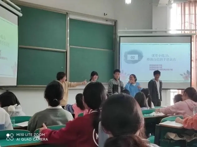 田老师用心灵手语操“我真的很不错”导入课程,现场气氛活跃,同学们积极参与,这是一个自信心训练,通过团体活动引导同学们正确认识自我、悦纳自我;同时为同学们详细讲解了大学生心理健康的标准和正确认识自己的基本渠道,让学生深刻认识到心理健康的重要性。最后还为同学们分享了一些日常心理调适的小技巧,告诉大家遇到心理困惑不要怕,要学会做自己的心理医生,自己解决不了要积极求助,求助是强者的表现,记住你不是孤单的一个人,你身边有老师,有同学,有朋友,我们一直在一起。