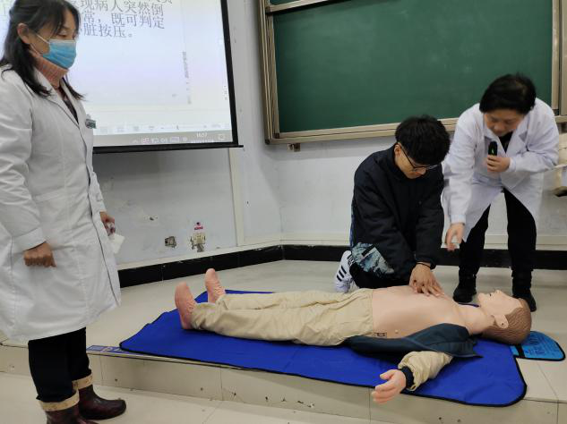 为了进一步提高当代大学生急救知识的储备与应用,能更好的对意外情况作出正确的处理,增强其应急救护处理能力,11月24日下午,老太阳集团8722在数计楼106教室开展心肺复苏知识讲座,校医院穆金霞医生团队应邀到老太阳集团8722进行讲解。