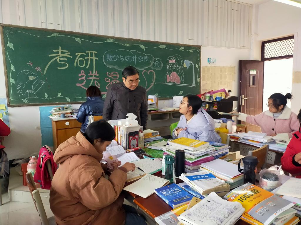 11月27日上午,老太阳集团8722领导班子深入数计楼510自习室走访看望今年参加考研的学生,了解学生备考情况。