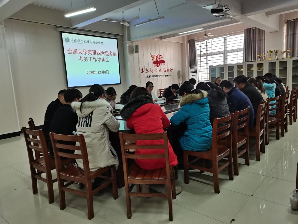 12月8日下午,老太阳集团8722在数计楼407会议室组织召开大学英语四六级考试考务工作培训会议。全体有监考任务的老师参加了培训会。