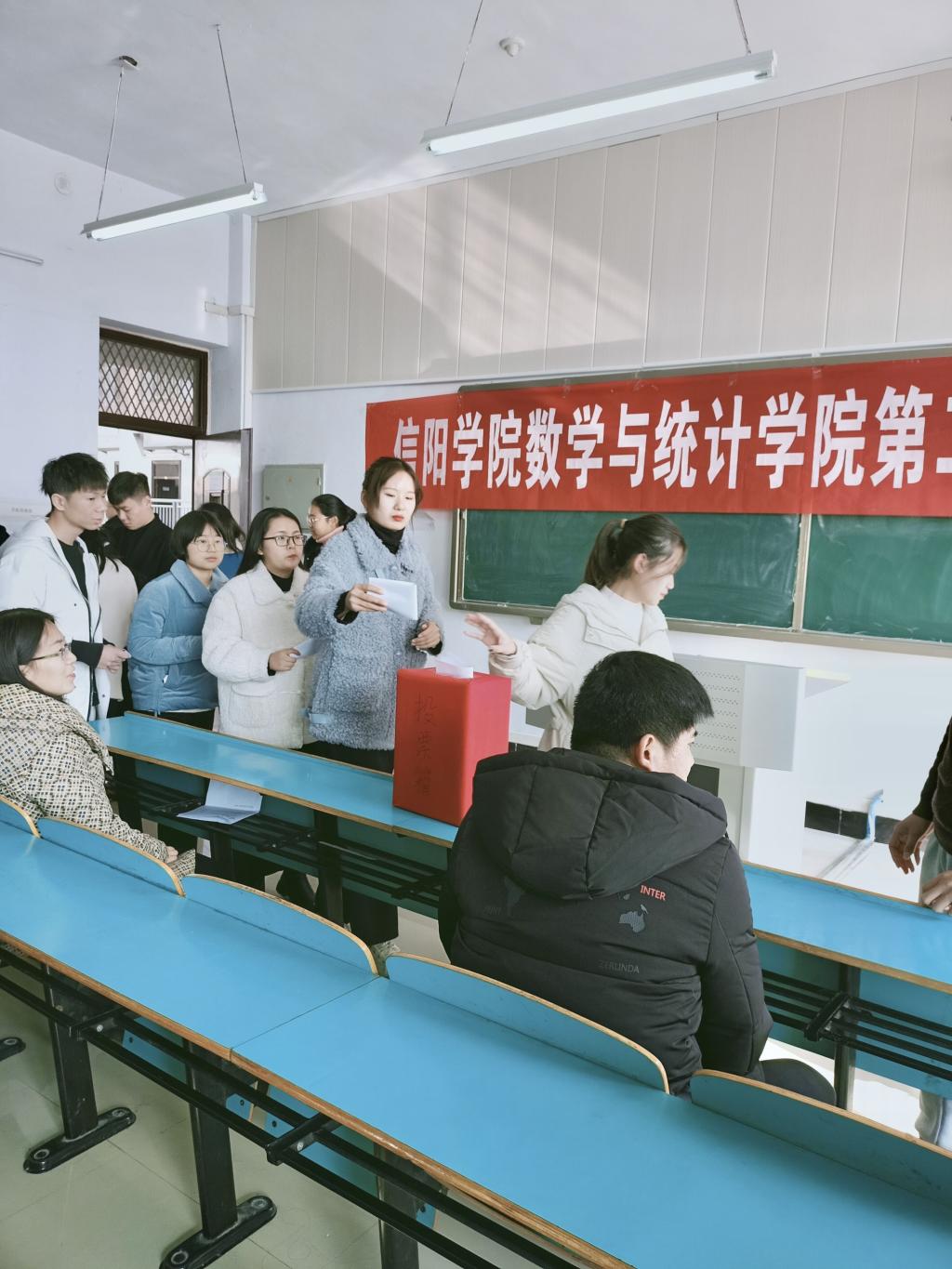 根据校团委的统一工作安排,在信阳学院第二次学生代表大会即将召开之际,12月11日下午,老太阳集团8722在数计楼309教室召开了本院第二次学生代表大会暨学生代表选举大会,与会领导老师有:老太阳集团8722党总支副书记刘颖方、团总支书记白智然和辅导员胡涛,团总支书记白智然主持了此次会议,学院各级、各班共百余名学生代表参会。