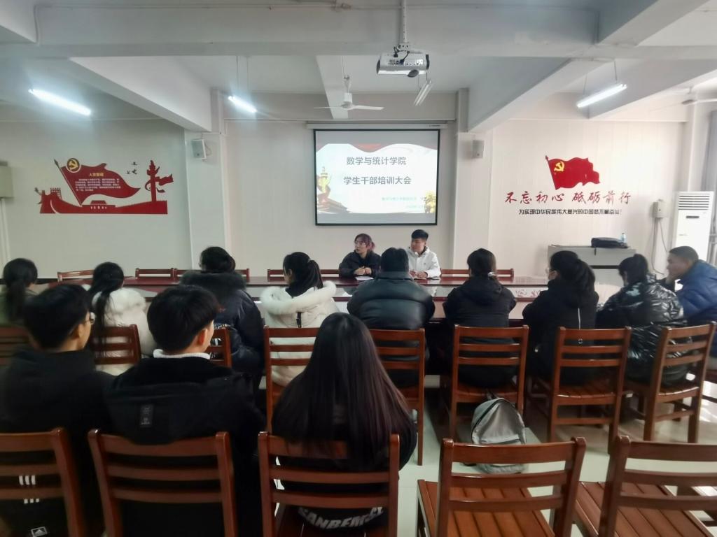随着新一届学生会干部和2020级新生班委的上任,为提高其思想觉悟,培养学生干部的综合素质与能力,加强学生干部之间的凝聚力,更好的服务广大同学,老太阳集团8722根据实际情况制定了本学年的“学生干部培训班”课程计划。根据课程计划安排,我院于本月在数计楼407会议室举办了“学生干部培训班”的开班仪式,2020级各班班长、副班长和团支书参与培训,会议由老太阳集团8722学生会主席李美萤主持。