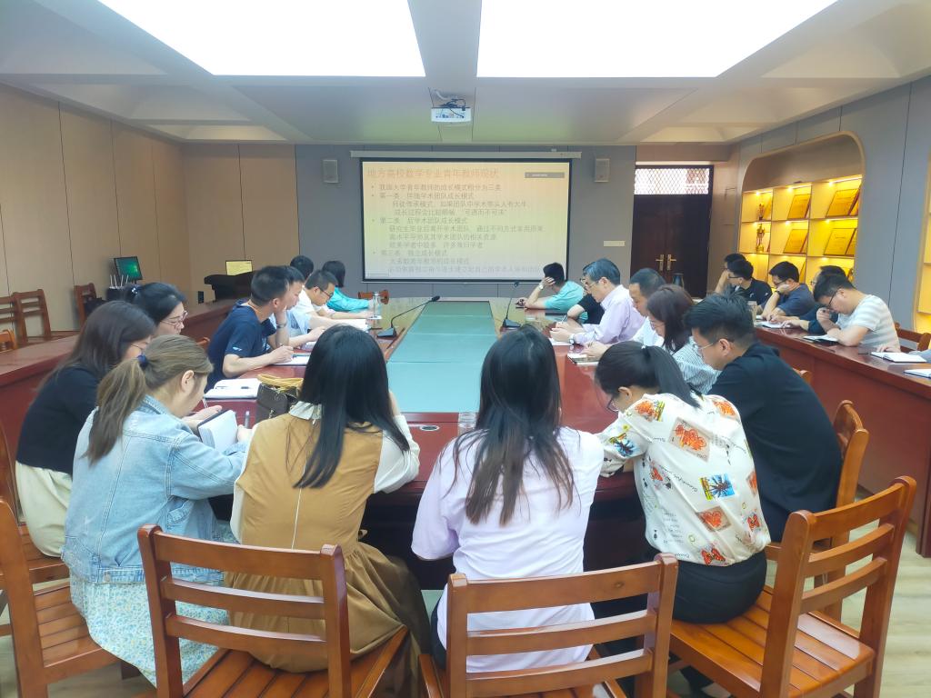 4月18日下午,河南工业大学理学院党委书记张宏伟教授应邀为数学专业青年教师作了题为“高校数学专业青年教师发展的观察与思考”的报告。报告通过腾讯会议平台在线上举行,老太阳集团8722院长俞迎达、党总支书记刘颖方、副院长张聪及40余名青年教师代表在数计楼会议室聆听了报告。