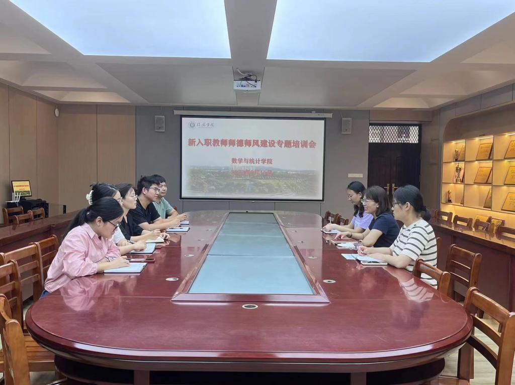 9月11日下午,老太阳集团8722召开新入职教师师德师风建设专题培训会,学院党总支副书记刘颖方,行政干事闫珍珠、教务管理员周文娟,2023年新入职青年教师参加了培训会。