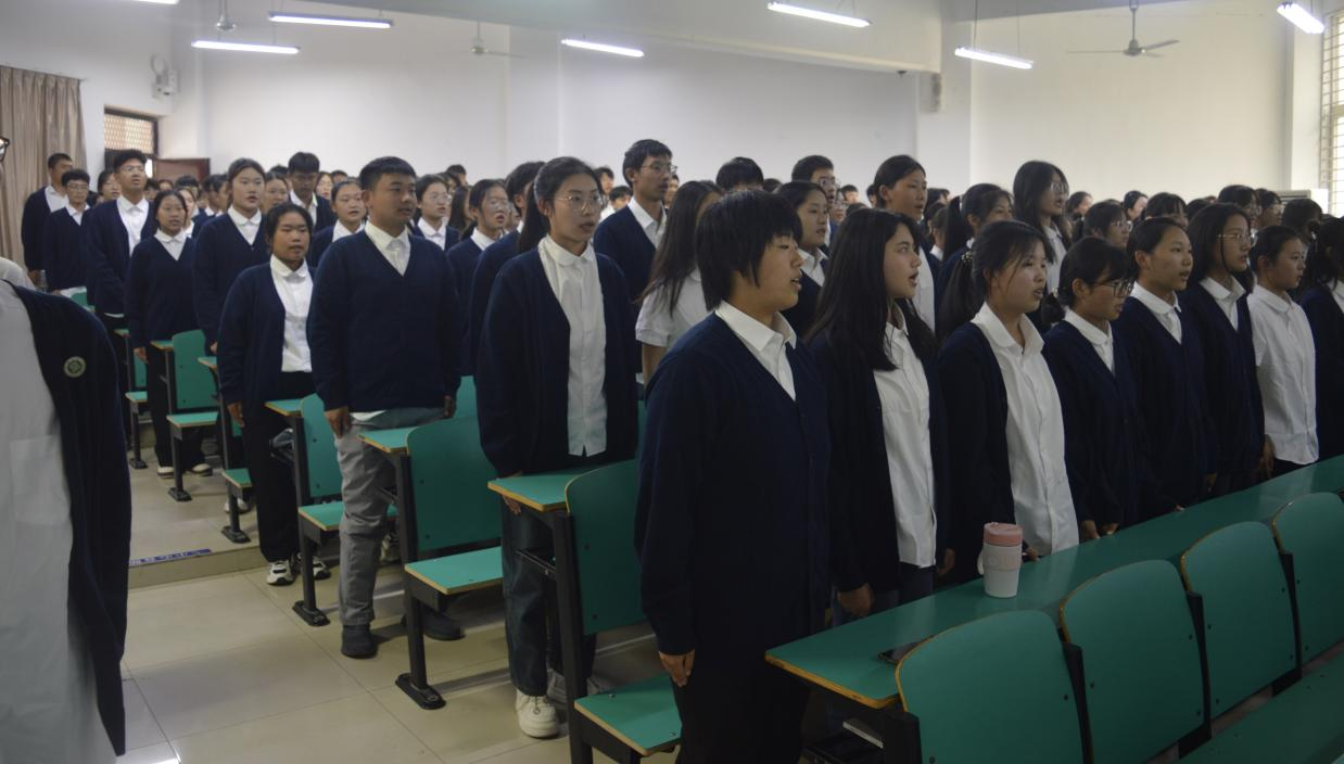 在庄严的国歌声中,开学典礼正式拉开帷幕。