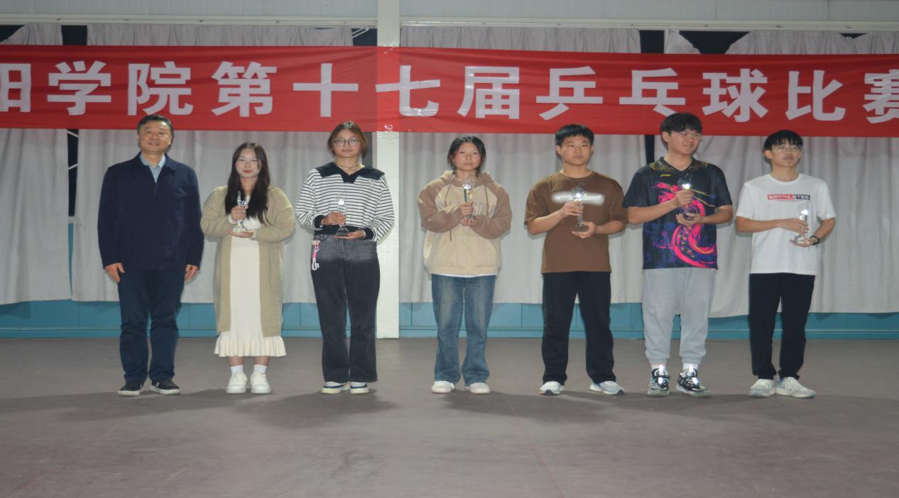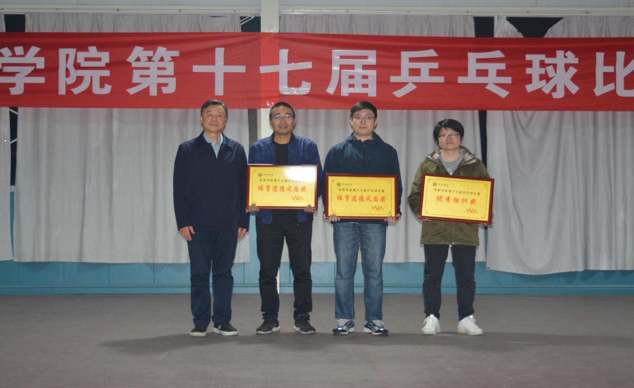 3月26日,信阳学院第十七届乒兵球比赛在数计楼乒兵球馆举行。我院共派出教职工和学生共16名运动员参赛。经过紧张激烈的角逐,教职工组获得团体赛第三名、学生女子组获得团体赛第一名、学生男子组获得团体第二名,吴兆凌同学获得女子组单打冠军。