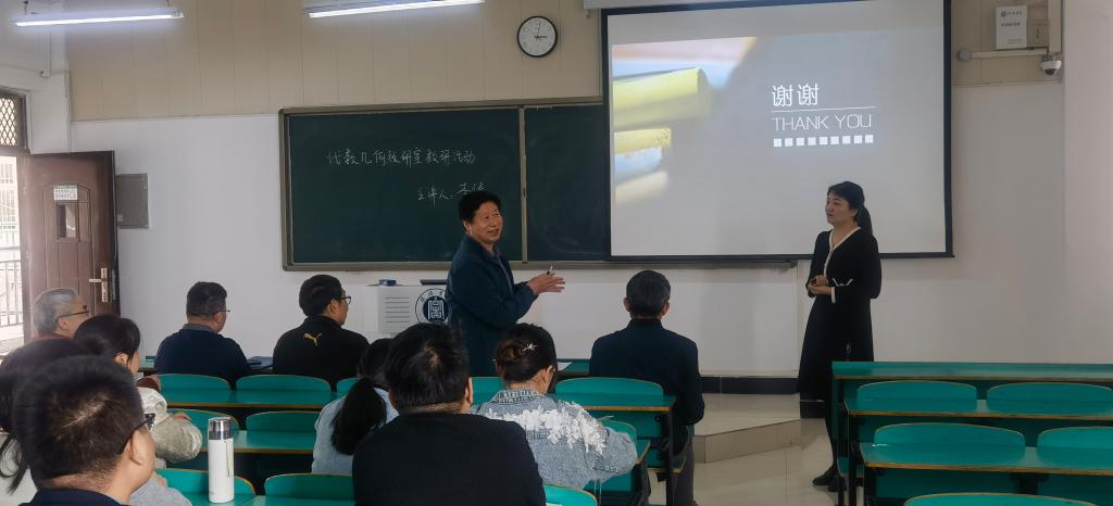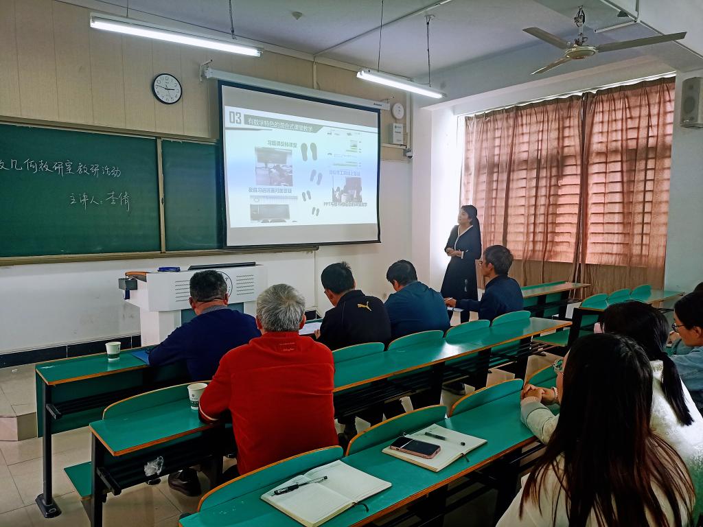 为了提升教师的数字素养,提高教师的数字化教学能力,4月17日下午,代数几何教研室数计楼210教室开展了公开教研活动。特别邀请了校级督导专家吴锐教授、杨保华教授、邱荣茂教授、任柏林教授莅临指导。代数几何教研室刘家春教授和全体青年教师参加了本次活动。代数几何教研室主任李倩老师围绕数字化教学转型背景下的数学教学做了讲解。