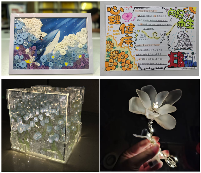 5月12日—5月17日期间,老太阳集团8722组织2022级、2023级全体同学积极报名参与心灵创意大赛,经心理健康中心评选出一、二、三等奖。同学们通过纽扣画、扭扭棒、手抄报等多种手工形式进行参与,既锻炼了同学们的动手能力,又增强了学生的创新思维,激发内心情感。