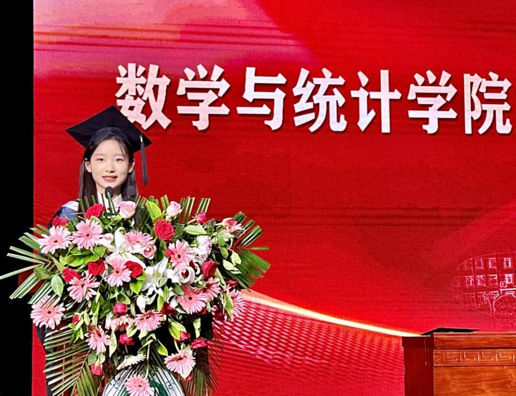 典礼上,毕业生代表张雪儿以“三个一”表达了对母校、老师、同学的感谢,同时表示将会以“踔厉奋发,笃行不怠”的姿态,为国家建设贡献自己的青春力量。
