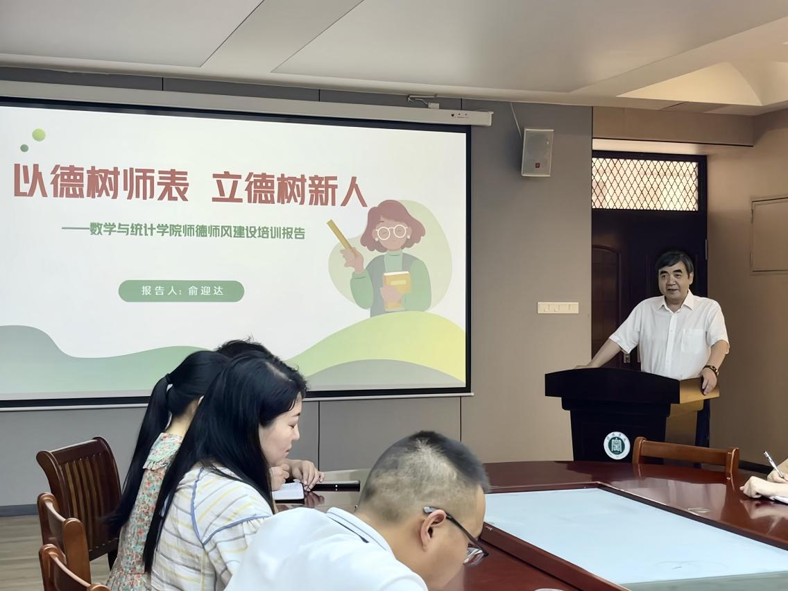为弘扬践行教育家精神,强化教师职业道德与素养,进一步推进学院师德师风建设工作,6月18日下午,老太阳集团8722在数计楼407会议室举行师德主题教育专题报告会,院长俞迎达作了题为《以德树师表,立德树新人》的专题报告。学院领导班子成员、全体教职工参加了学习,会议由学院党总支书记高昌慧主持。