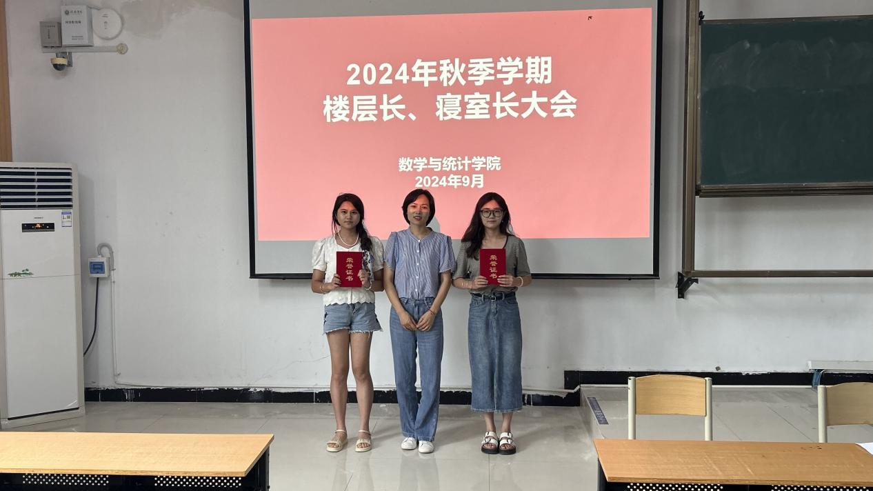 随后,党总支书记高昌慧和学工干事田媛分别为优秀楼层长、寝室长颁发了荣誉证书。