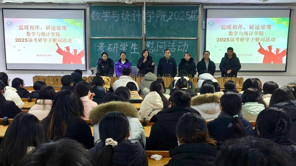 俞迎达院长代表全院师生向2025届考研学子表达了慰问,并详细询问了同学们的学习进度,希望同学们坚持考到底、不放弃不气馁,保持平稳心态,以自信从容的姿态走进考场,发挥出自己最佳水平。