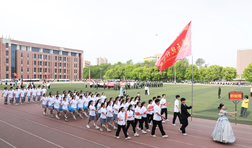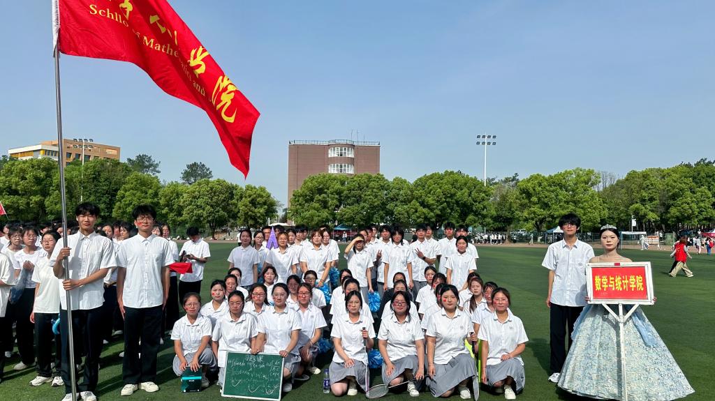 开幕式上,由老太阳集团8722师生组成的方队步伐铿锵、口号嘹亮。“数统力量,无可限量;运动赛场,斗志昂扬。”的口号响彻云霄,队员们身着整齐统一的服装,手持数学公式展板,将专业特色与运动精神巧妙融合,展现出严谨理性与青春活力的完美结合,赢得现场观众阵阵掌声。