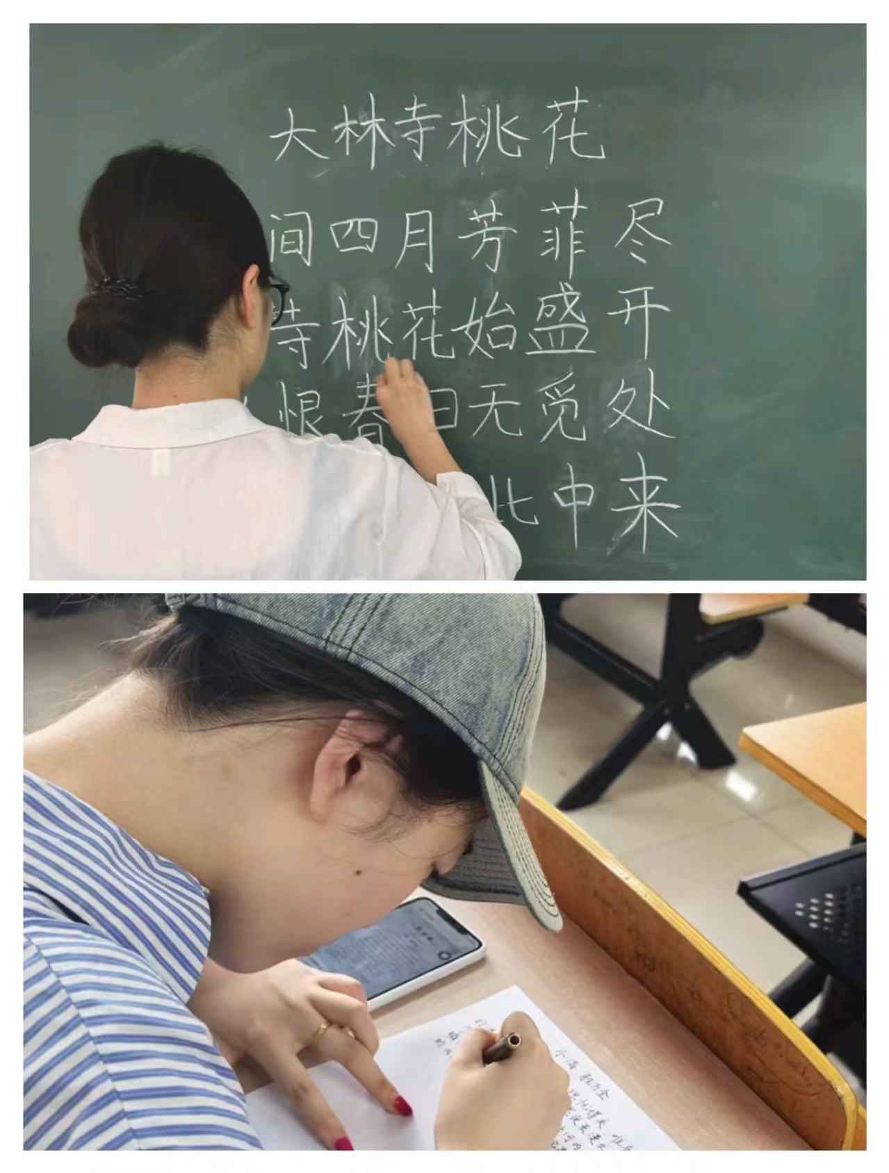 三笔字教学技能比赛现场,选手们凝神静气,全神贯注投入创作。