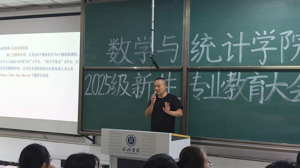 会上,俞迎达首先围绕学院具体情况展开介绍,从师资力量、专业介绍、学风建设,就业前景四个核心维度为新生搭建起对学院的整体认知,为新生未来规划提供参考。同时,俞迎达对新生提出四点要求:一是坚定专业思想,主动探索数学学科的魅力,培养对专业的热爱;二是转变思想观念,尽快适应大学自主学习模式与集体生活节奏;三是明确学习目标,树立长远发展意识,立志通过考研、出国深造等方式提升自我;四是树立正确的价值观,在注重学业的同时,积极参与实践活动,实现德智体美劳全面发展。