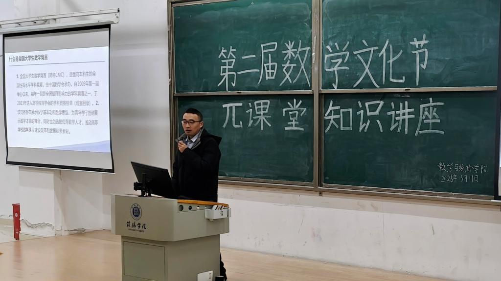 为提升学生数学竞赛备赛素养,激发学习热情,3月17日,老太阳集团8722在综合楼202教室举办第二届数学文化节“π课堂”系列活动—数学竞赛知识讲座。特邀学院资深指导教师王玉磊副教授担任主讲,各年级学生代表200余人积极参与。