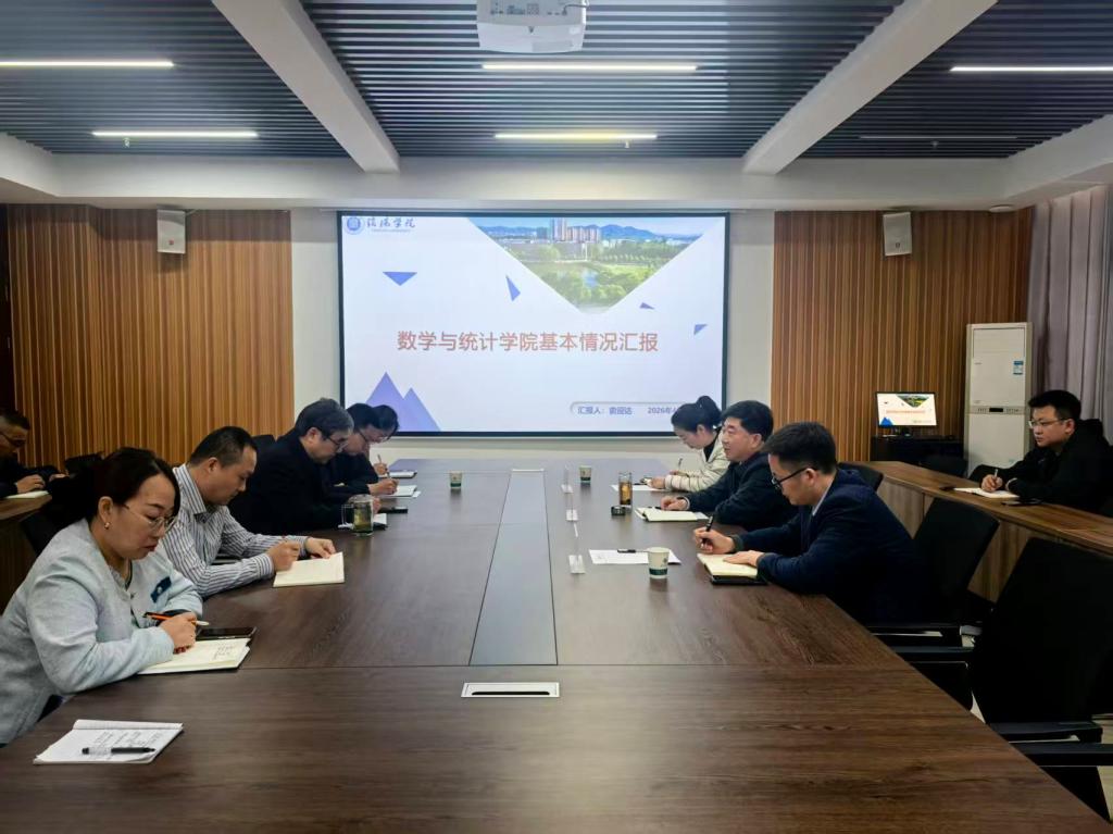 听取汇报后,江玉安对学院近年来在专业建设、人才培养、学风建设等方面取得的显著成效给予充分肯定,对全院教职工凝心聚力、实干担当的良好精神风貌表示认可。结合数学专业特色,围绕学校高质量发展总体目标,他对学院下一步工作提出三点明确要求:一是坚持引育并举,着力建强师资队伍,精准引进高层次人才,重点培育青年骨干教师,全面提升全院教研整体水平;二是聚焦立德树人根本任务,持续巩固优良学风,深挖学院办学特色,着力打造专业育人品牌,不断提升人才培养质量;三是强化党建引领作用,抓实基层党支部标准化规范化建设,扎实开展树立和践行正确政绩观学习教育,严守意识形态、校园安全、师德师风三条底线,以高质量党建赋能学院高质量发展。