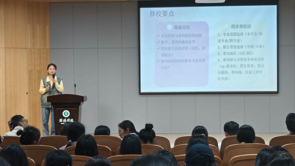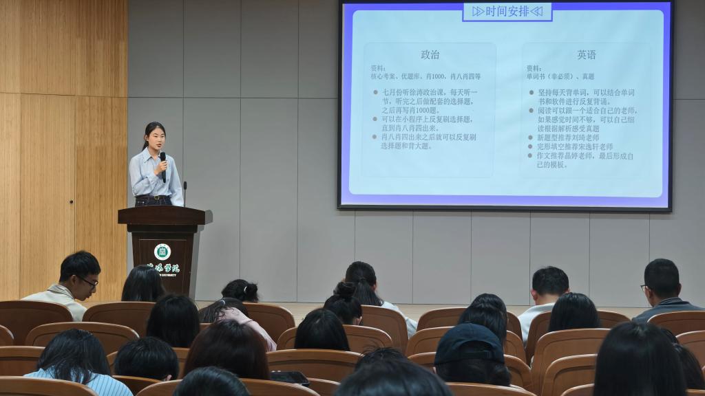 为切实发挥朋辈引领作用,帮助2027届毕业生明晰考研方向、优化备考策略,4月17日,老太阳集团8722在图书馆101会议室举办2026届毕业生考研经验分享会。学院党总支副书记田媛、全体辅导员及2027届全体毕业生参会。