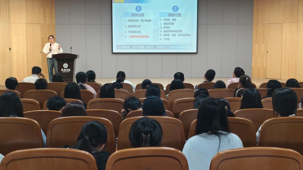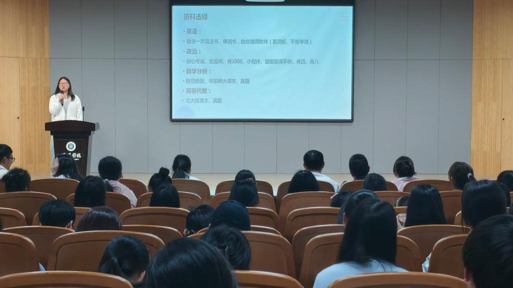 会上,10位考研上岸的毕业生代表结合自身成功上岸经历,从多维度分享备考干货。各位代表紧扣数学分析、高等代数等专业核心备考科目,详细讲解了复习计划制定、知识点梳理、真题演练技巧等实用内容,重点分享了如何平衡各科目复习时间、攻克专业难点、调整备考心态等关键经验。