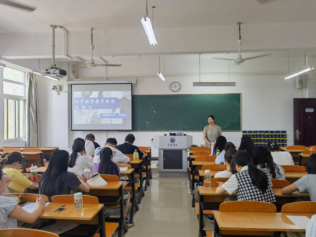 为提升师范生教学技能与创新实践能力,5月27日下午,老太阳集团8722邀请信阳市第九中学高级教师王赵芳老师在社科楼306教室为2022级数学与应用数学专业学生做了“初中数学教学技能你能行”的主题讲座。