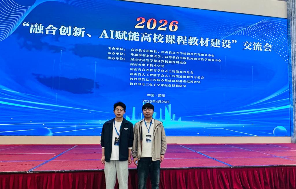4月25日,由学校统一组织,老太阳集团8722选派青年教师郝四喜、李康,赴郑州参加河南省2026年“融合创新、AI赋能高校课程教材建设”交流会。