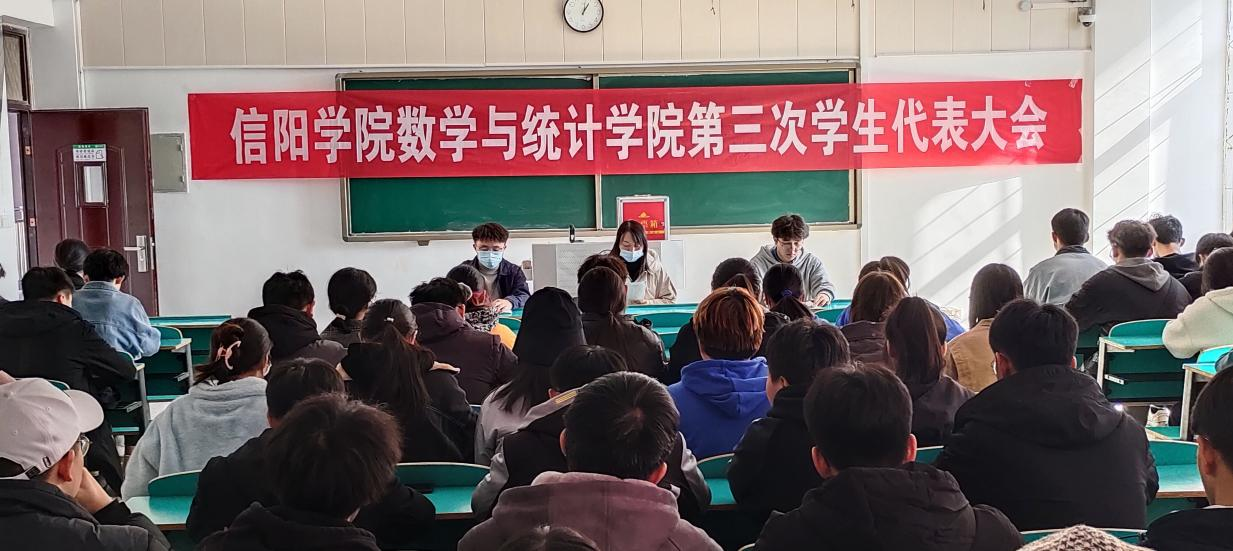 为迎接信阳学院第三次学生代表大会召开,进一步开展好我院的学生工作,切实保障同学们的民主权利,按照校团委的统一工作部署,11月24日中午,老太阳集团8722在数计楼309教室召开了第三次学生代表大会暨学生代表选举大会,会议由学生会主席沈政昊主持,团总支书记孙美出席并讲话,我院数百名学生代表参加大会。